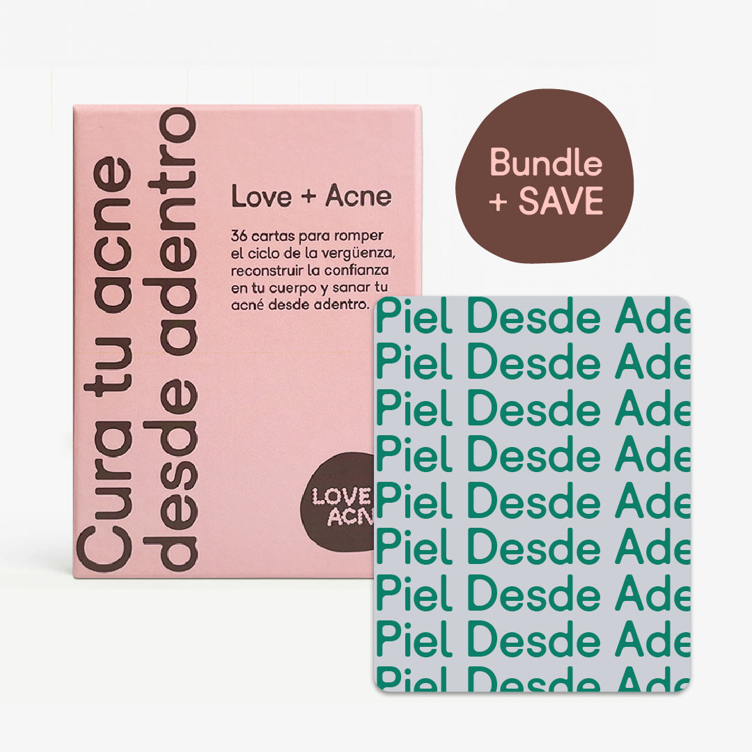Inicia tu proceso de sanación desde adentro con guía personalizada y apoyo diario. En tu Sesión Piel Interior recibirás una evaluación completa de lo que está provocando tu acné a través de los 4 Pilares, además de un plan personalizado diseñado para ti. La baraja auto-guiada ”Cura Tu Acné Desde Adentro" te ofrece herramientas diarias para explorar tus desencadenantes, cambiar tus pensamientos y crear prácticas sustentables—manteniendo el impulso mientras implementas tu plan personalizado. Esta combinación poderosa te da tanto el conocimiento experto como las herramientas continuas para lograr un cambio verdadero.